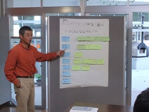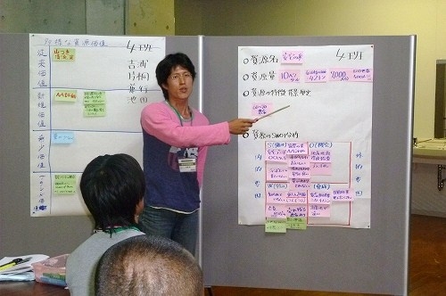 各グループの発表の後、講師の曽根原さんから、「リストはつくれますか」、「そのリストのサンプルはいくつですか」、「そのリストには、どのようにアプローチできますか」という投げかけを受けて、対象を数値化し、より具体的にすることで、アプローチの方法が明確になることを学びました。